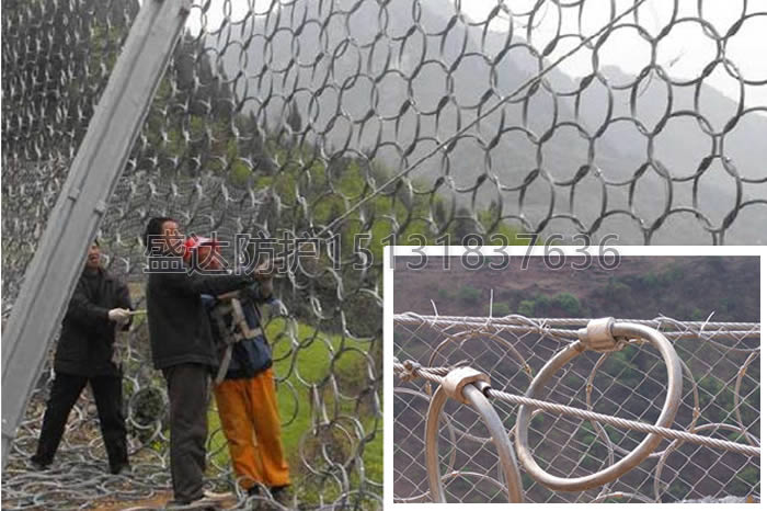 产品特性:用数股钢丝盘结成环形相互套接而形成的网。其作用是拦截落石防护能量一般为150kj--2000kj。